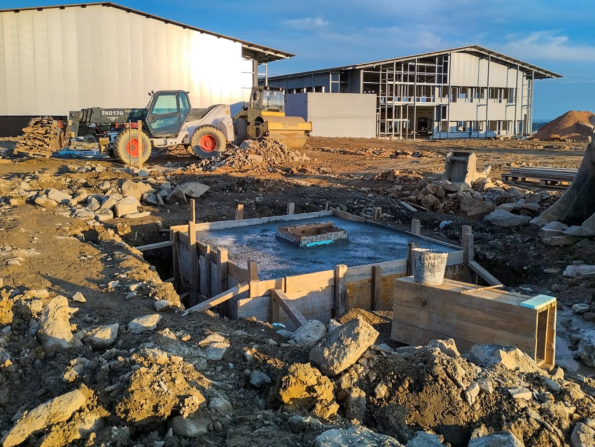 A Oliveira Ramos realizou recentemente a fundação para novos edifícios e galpões na Rica Granja, com a execução de sapatas estruturais destinadas a suportar os pilares da obra.